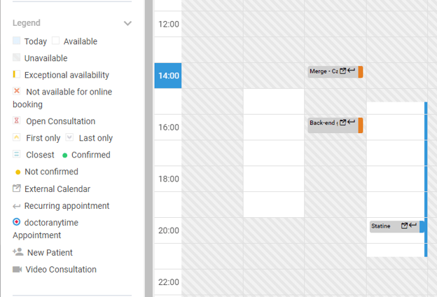 The legends allow you to know the Settings of your agenda thanks to the captions. They help you summarize a variety of details and Settings of an appointment or an availability.