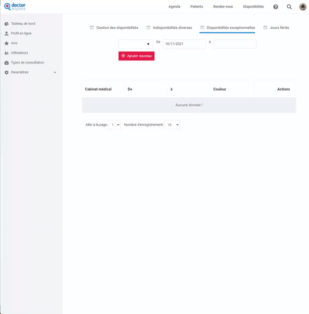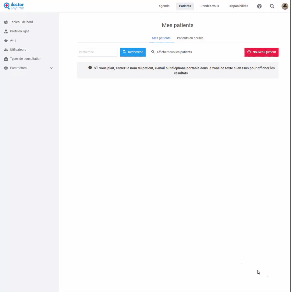 Si vous êtes dans une autre rubrique de votre compte, vous pouvez revenir à votre agenda en cliquant sur le logo Doctoranytime.