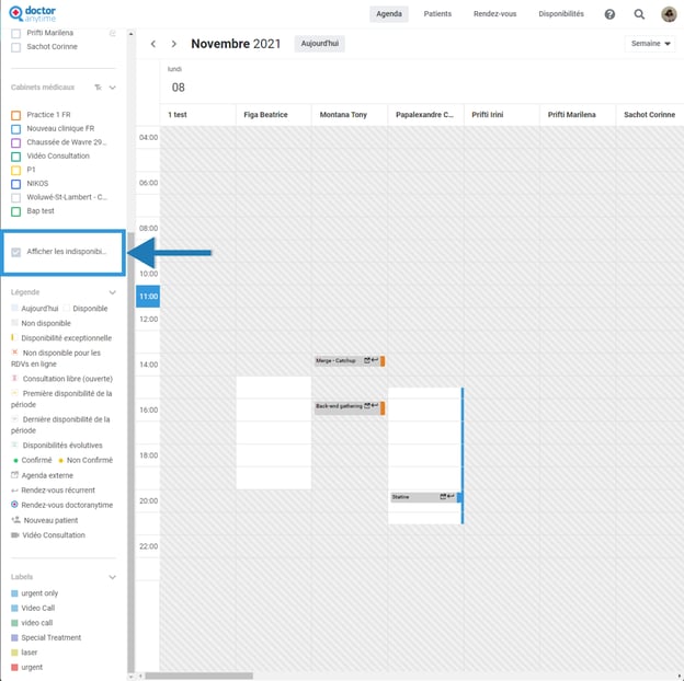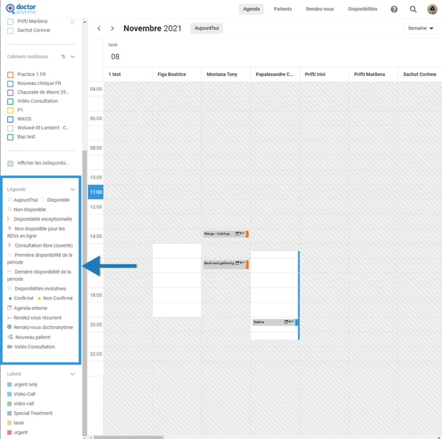 - Légende : les icônes présentes dans la légende apparaîtront dans votre agenda et vos rendez-vous. Pour plus de détails, cliquez ici.