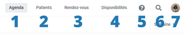 - Menu utilisateur - vous pouvez l’utiliser afin de naviguer dans les différentes sections de votre agenda Doctoranytime