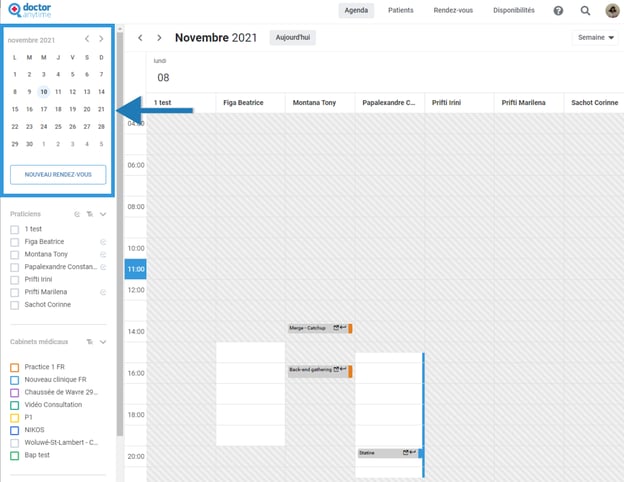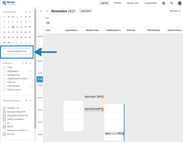 - Bouton nouveau rendez-vous : permet de planifier rapidement un nouveau rendez-vous.
