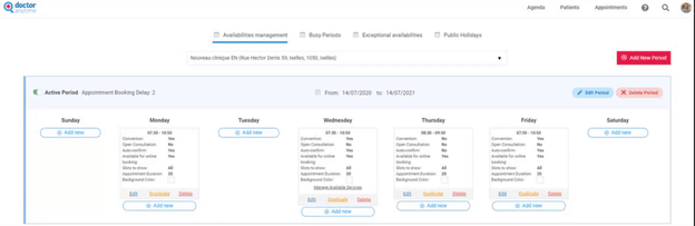 Une fois que vous avez créé un créneau horaire, vous pouvez définir vos horaires personnalisés qui apparaîtront dans votre agenda et votre profil public, pour que les patients puissent prendre rendez-vous en ligne.