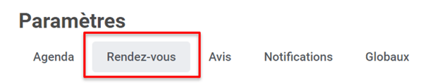 - Cliquez sur Paramètres, puis sur Rendez-vous.