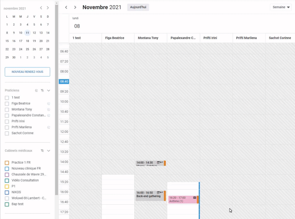 Si vous souhaitez modifier l'heure, il vous suffit de faire glisser le rendez-vous vers la nouvelle tranche horaire. L'option permettant d'informer le patient de la modification apparaîtra à nouveau.