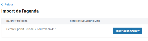 Veillez à bien cliquer sur le bouton bleu “Importation Cronofy”, et une nouvelle fenêtre s’ouvrira pour Cronofy.