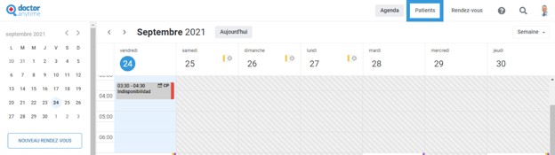 - Cliquez sur le bouton Nouveau rendez-vous en rouge.