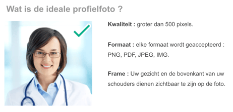 Het kiezen van een profielfoto is cruciaal om een goede eerste indruk te maken bij uw patiënten. In de meeste gevallen is de foto voor hen een belangrijke referentie en onderscheidt deze u t.o.v. andere zorgverleners.