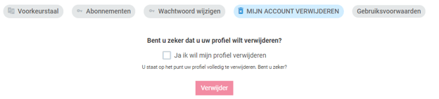 Vink Ja, ik wil mijn profiel verwijderen